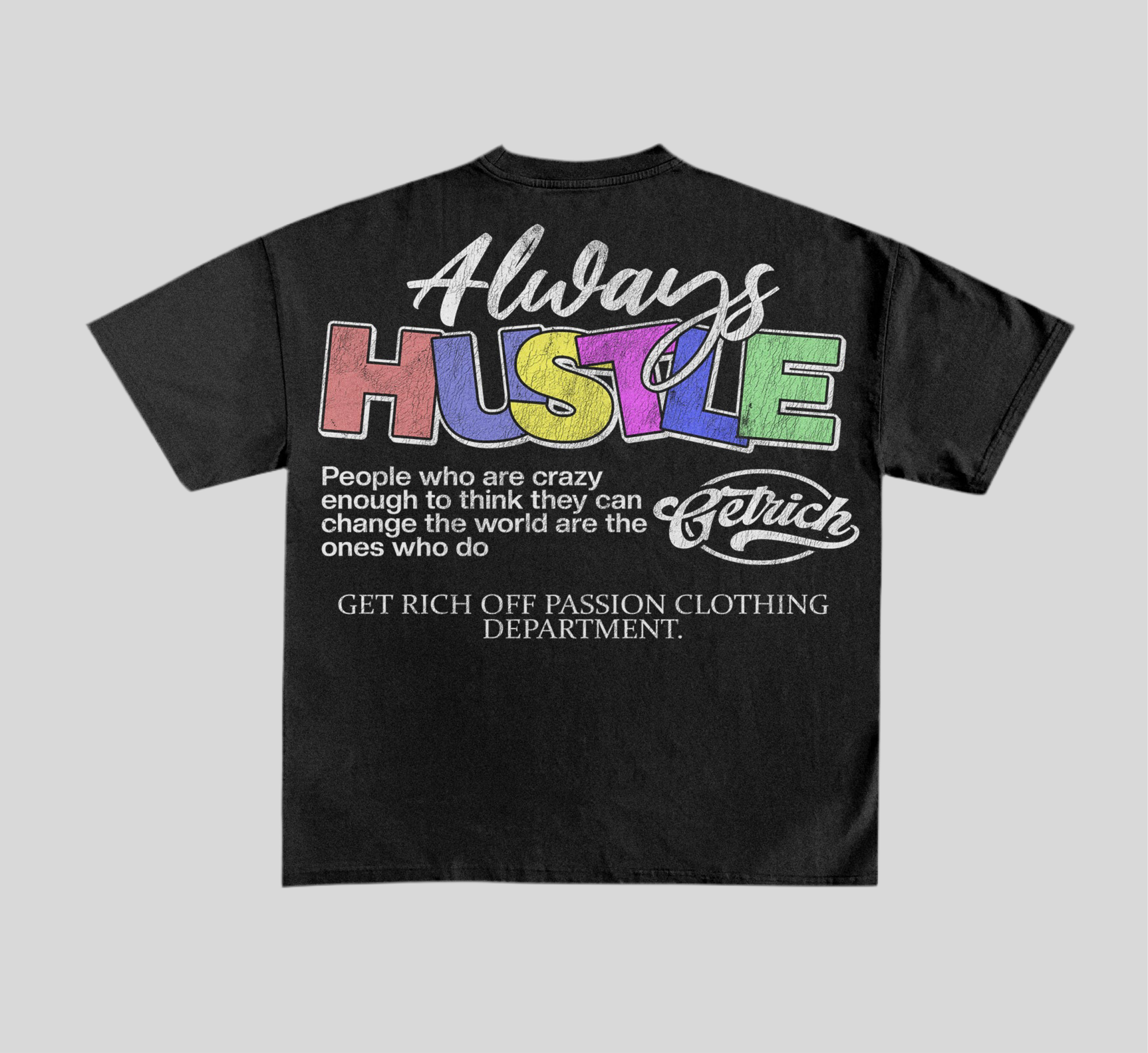 "Stay motivated and elevate your game with our LIMITED EDITION "Always Hustle" T-Shirt. Let your passion drive you to success and inspire others to do the same. Don't settle for less, always hustle and get rich off your drive and determination. Order now and join the hustle!"